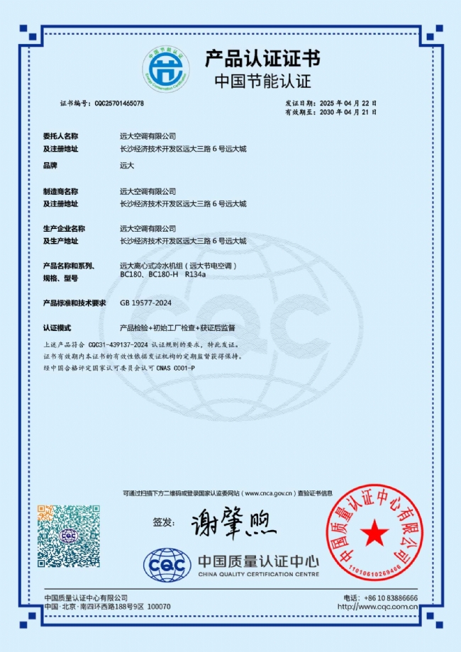 BC180、BC180-H节电空调节能认证中文证书