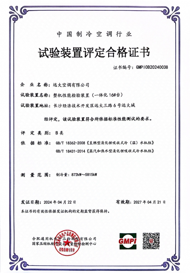 试验装置评定合格证书_一体化16#台